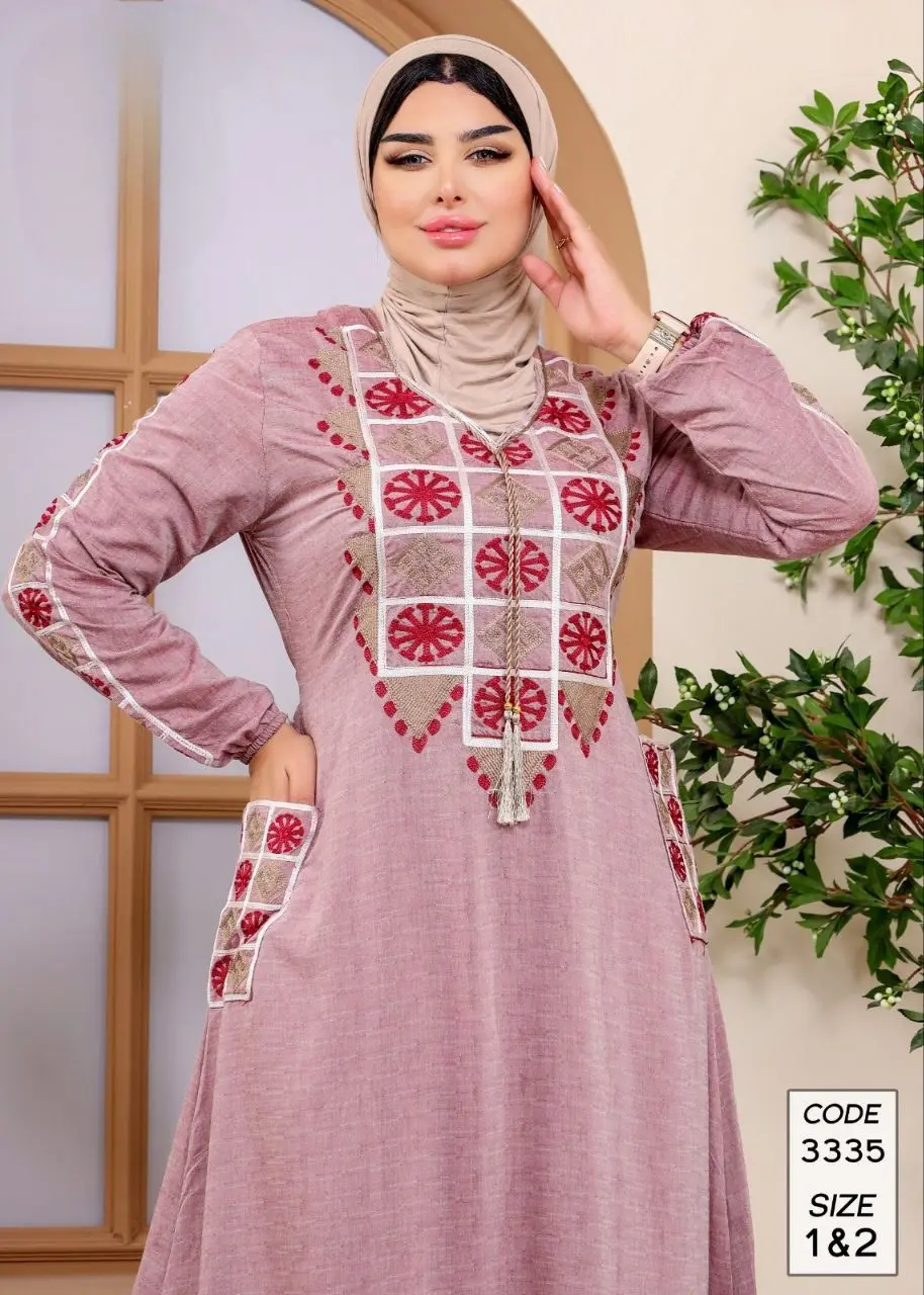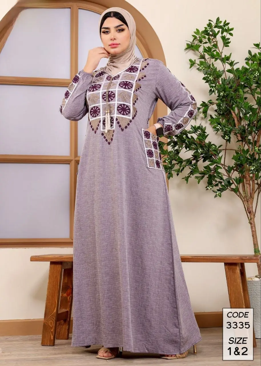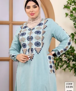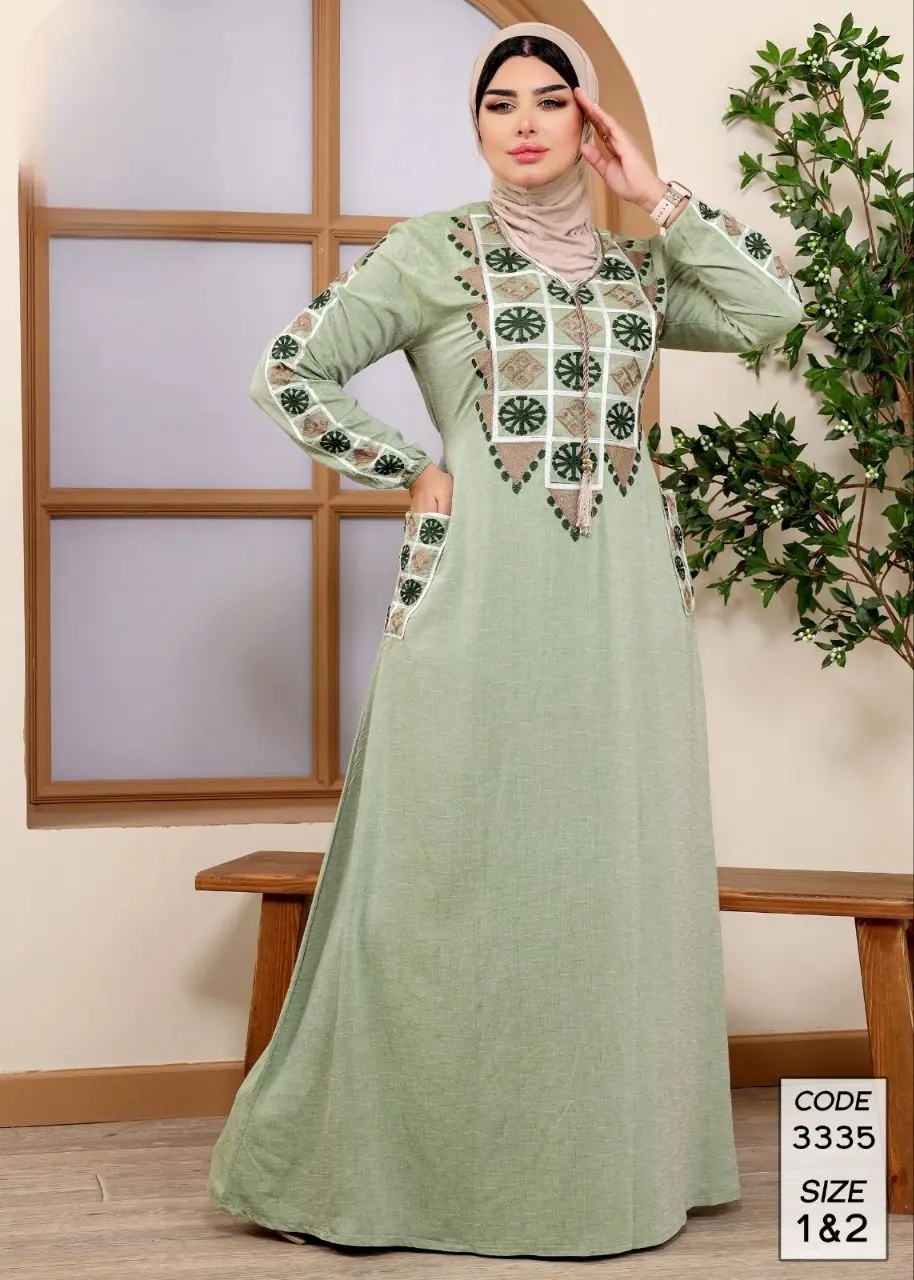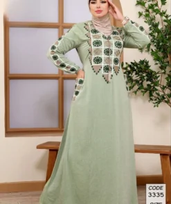 دار الجلابية – عباية كتان بكلفة و تطريز ترتر علي الكم