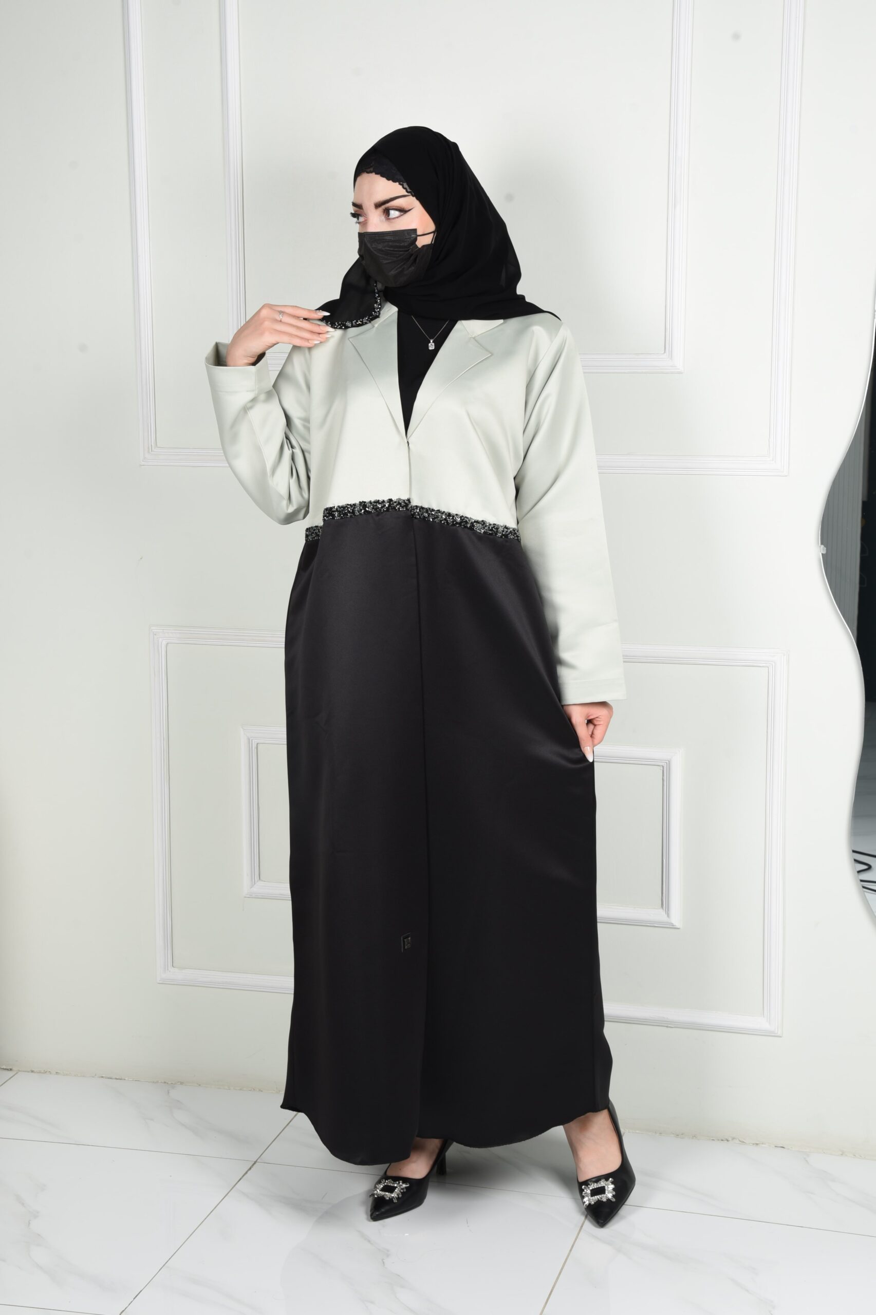 عباية كريب بلونين زيتوني وأسود وتطريز خرز