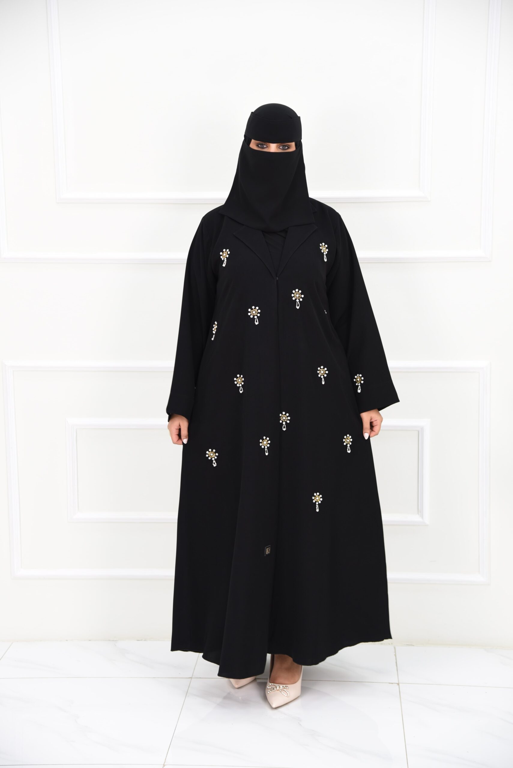 عباية كريب مرصعة بالفصوص الذهبية والكريستال