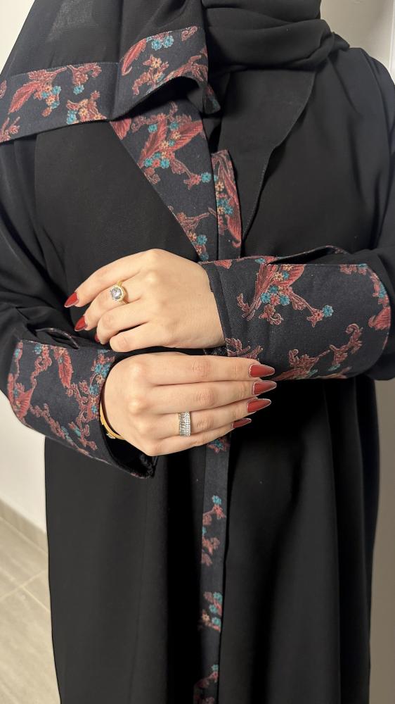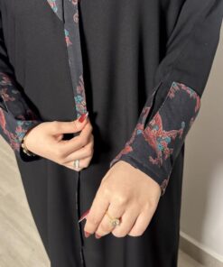 عباية بلون اخضر ناعمة بتطريز شك أنيق على الصدر والأكمام