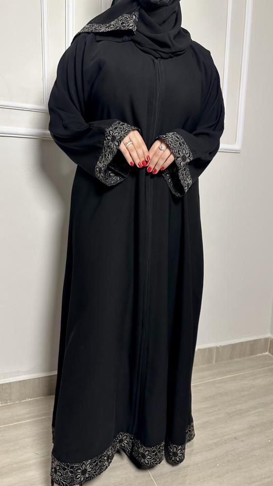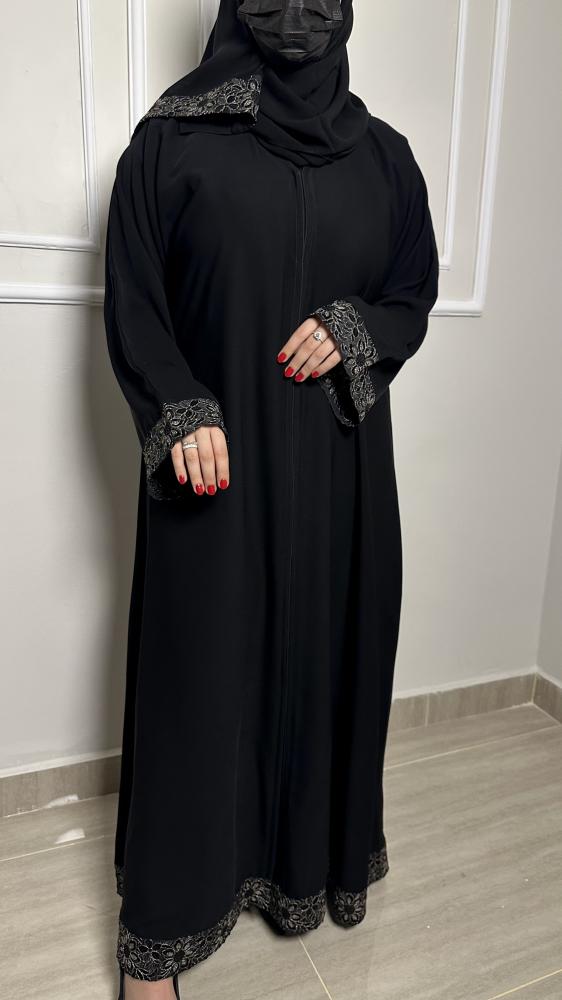 عباية نص كلوش بنقش اسود-849